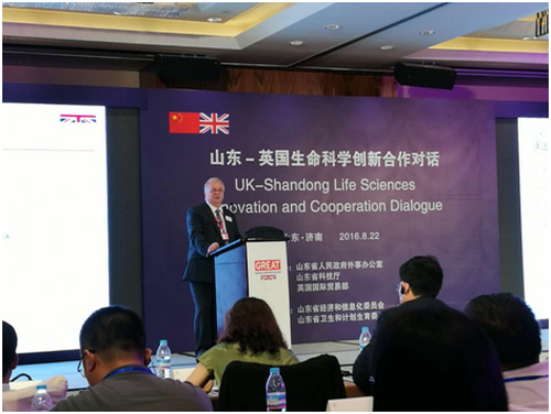 為促進山東省與英國在生命科學領域的創新合作,由山東省外事辦公室、山東省科技廳、英國駐華大使館、英國貿易投資總署共同主辦,山東省經信委、山東省衛計委協辦的“山東•英國生命科學創新