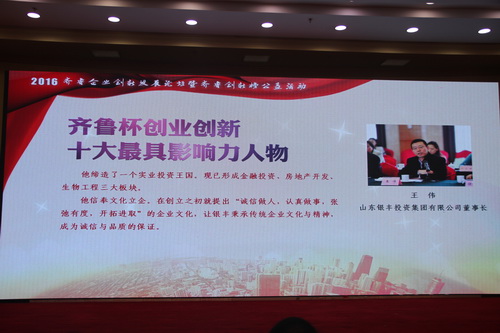 2016年3月26日,由《聯合日報》社、山東省創業促進會、《齊魯網》、《聯合網》主辦的山東省創業創新高端論壇暨首屆齊魯創業創新榜大型公益活動在山東省政協會堂隆重舉行。