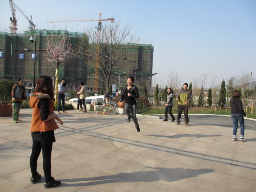 隨著哨聲的響起,大家就像兒時課間活動一樣積極主動地來到辦公樓前廣場集合,讓在電腦前勞累了近一天的身體得到舒展,踢毽子、跳繩、轉(zhuǎn)呼啦圈、打羽毛球,活動形式多樣,活動氛圍熱鬧非凡,大家在歡快的氛圍里一起運動,即增進了感情,又鍛煉了身體。