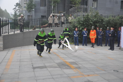 最后,演習人員又給員工和業主演示了消防水帶的連接和滅火器的使用方法。現場員工和業主們積極參與了此次實踐,了解和掌握了正確使用滅火器材的方法,提高了處理初起火災的能力。