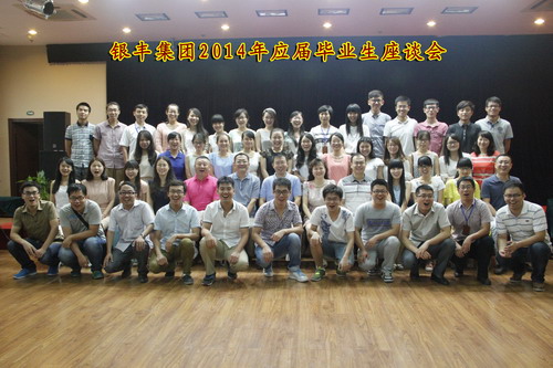 2014年7月24日下午3:30,銀豐集團2014年應屆畢業生座談會在銀豐大廈11樓多功能廳舉行,來自控股集團、子集團及所屬子公司的部分應屆生約50余人參加了座談。銀豐集團王偉董事長攜領導班子出席會議。