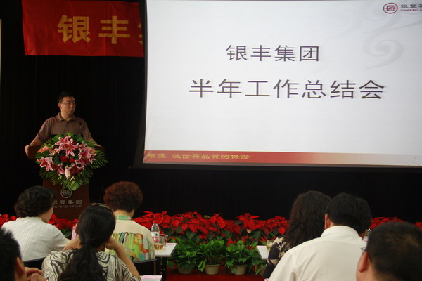 2012年7月21日上午,銀豐集團2012年半年工作會議在銀豐大廈11樓多功能廳舉行。此次會議的主要任務(wù)是總結(jié)銀豐集團2012年上半年的工作,安排部署下半年的各項任務(wù),動員集團上下明確方向,振奮精神,全面完成全年發(fā)展目標(biāo)。
