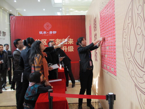 2013年3月16日,銀豐唐郡精系新品應(yīng)市加推,300余名泉城市民再次聚首,現(xiàn)場(chǎng)火爆。早上8時(shí)30分,濟(jì)南及周邊的中高端置業(yè)者熱聚一堂,偌大的營(yíng)銷(xiāo)中心已是座無(wú)虛席。在工作人員引導(dǎo)下,前來(lái)參與開(kāi)盤(pán)儀式的客戶在客戶休息區(qū)靜候選房,同時(shí)品嘗著銀豐唐郡精心準(zhǔn)備的水果、甜點(diǎn)。據(jù)現(xiàn)場(chǎng)工作人員介紹,銀豐唐郡本次開(kāi)盤(pán)主力戶型為54㎡的精致一居和123-141㎡舒適三居,都是銀豐唐郡傾情打造的經(jīng)典戶型,為居者提供完美生活空間。有幾位市民表示,銀豐唐郡價(jià)格合適,戶型也很好,性價(jià)比較高,希望能選到稱(chēng)心如意的房子。