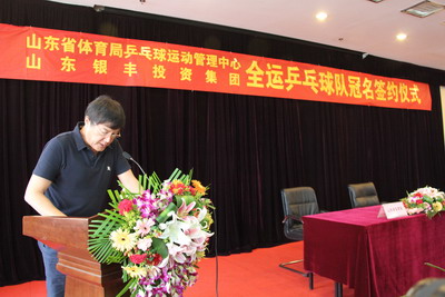 2013年7月24日上午10點,山東省體育局乒乓球運動管理中心、山東銀豐投資集團(tuán)全運乒乓球隊冠名簽約儀式在銀豐大廈隆重舉行。