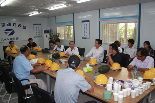 8月7日,在濟南市體育局黨委委員、副局長李國綱,濟南市體育局黨委委員、濟南市奧林匹克體育中心主任、黨委書記杜在東的帶領(lǐng)下,濟南市體育局黨的群眾路線教育實踐活動領(lǐng)導(dǎo)小組一行10人到銀豐唐郡項目調(diào)研。