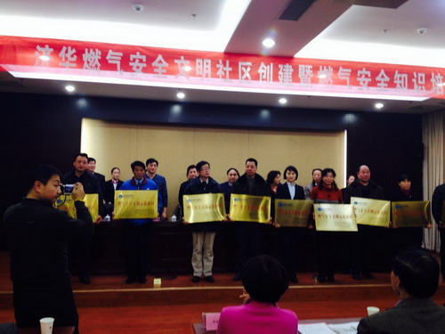 2014年1月15日上午,濟(jì)南市文明辦、市安監(jiān)局、市政公用事業(yè)局、濟(jì)華燃?xì)饴?lián)合召開“燃?xì)獍踩拿魃鐓^(qū)”表彰大會(huì)。