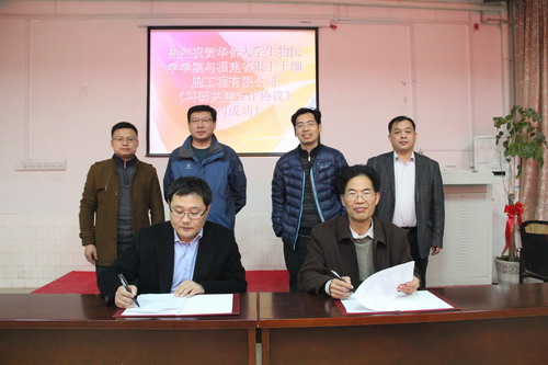2014年1月5日,福建省銀豐干細(xì)胞工程有限公司董事長王同偉與華僑大學(xué)生物醫(yī)學(xué)學(xué)院書記兼副院長刁勇在福建泉州順利簽署了《科研共建合作協(xié)議》。銀豐生物集團(tuán)副總經(jīng)理董白翔、福建省銀豐干細(xì)胞工程有限公司總經(jīng)理劉建仁和華僑大學(xué)生物醫(yī)學(xué)學(xué)院副院長林俊生、研究員王國權(quán)出席了簽約儀式。
