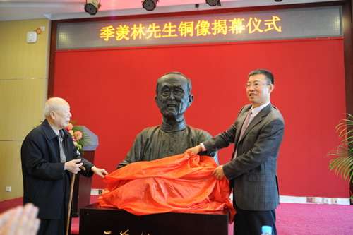 為紀(jì)念季羨林先生逝世五周年,2014年5月18日,由山東銀豐投資集團(tuán)有限公司董事長王偉出資并代表北大山東校友會(huì)向母校捐贈(zèng)的季羨林先生銅像在北大燕園落成。北京大學(xué)副校長王仰麟,北京大學(xué)原黨委副書記、副校長郝斌,北京大學(xué)原副校長李安模,北京大學(xué)外國語學(xué)院院長程朝翔,北京大學(xué)外國語學(xué)院黨委書記寧琦,山東省人大常委會(huì)原副主任、北大山東校友會(huì)會(huì)長墨文川等領(lǐng)導(dǎo)出席活動(dòng)。