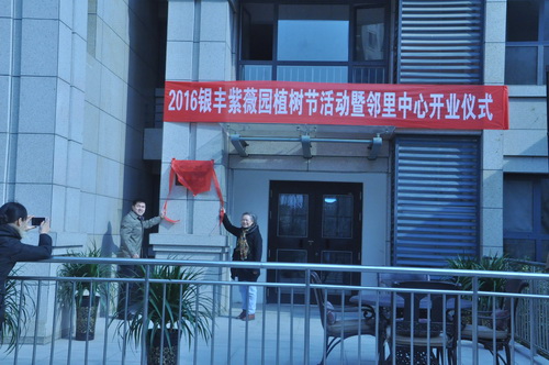 2016年3月12日,銀豐物業第二管理中心總經理陶承東與業主代表一起為銀豐唐郡紫薇園 “鄰里中心”揭牌。在陣陣掌聲中,銀豐唐郡紫薇園 “鄰里中心”正式啟動。