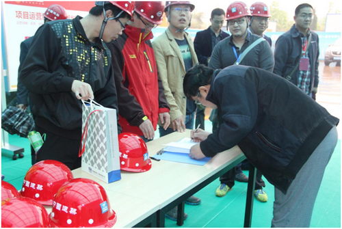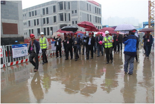 當(dāng)天,濟(jì)南迎來了入春以來的第一場雨,春雨如絲,略顯清涼的天氣并沒有阻礙貴賓們現(xiàn)場觀摩東8區(qū)工地的熱情。上午9點(diǎn)之前,嘉賓現(xiàn)場簽到領(lǐng)取安全帽,隨后在工作人員的引導(dǎo)下有序進(jìn)入正在施工中的東8區(qū)·企業(yè)公館。