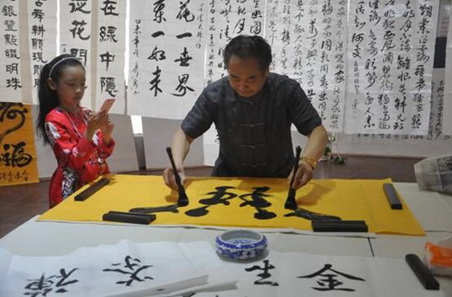 本次展覽共分作品鑒賞、書畫攝影學會掛牌和現場創作三個環節?;顒蝇F場吸引了很多熱愛書畫、攝影的業主前來參觀交流。幾位業主即興現場揮毫潑墨,妙筆生花!