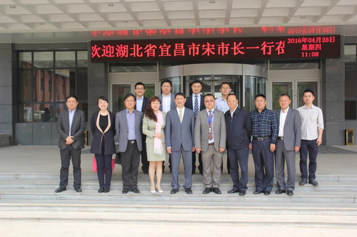 2016年4月28日,湖北省宜昌市市委常委、常務副市長宋文豹,宜昌市政協副主席、市財政局黨組書記、局長徐煒等一行10人在湖北銀豐鼎誠公司總經理宋現收的陪同下,赴銀豐集團參觀考察。山東銀豐投資集團董事長王偉、銀豐生物集團董事長彭秀玲、總裁生德偉等熱情接待了宋文豹副市長一行。