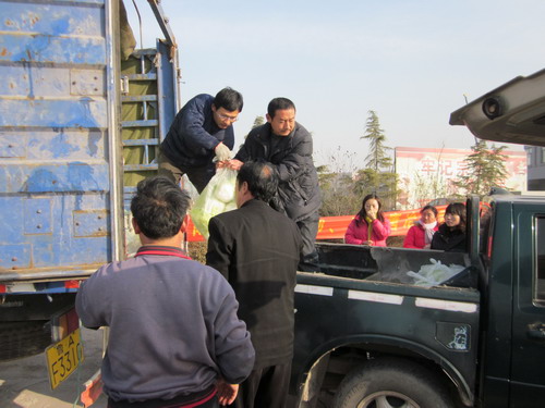 2011年12月22日上午,銀豐唐冶公司在唐冶街道辦事處的協助下將“愛心捐助活動”所捐善款購買歷城唐王鎮大白菜兩萬余斤,并在街道辦事處工作人員的幫助下將白菜發放到唐冶街道下轄11個行政村的困難群眾代表的手中,解決了村中困難群眾、孤寡老人近半月的吃菜需求。