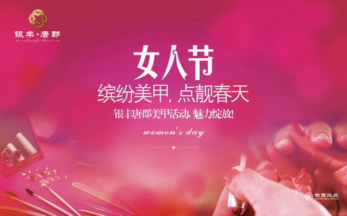2013年3月9日-3月10日,銀豐唐郡“繽紛美甲 點亮春天”美甲DIY活動于營銷中心魅力綻放。本次活動借女人節(jié)契機為愛美的女士們上演了一場炫彩奪目的美甲彩妝秀。活動現(xiàn)場特邀的專業(yè)美甲師為女士們設(shè)計并制作了個性漂亮的美甲款式,也指導(dǎo)來賓們?yōu)樽约夯蚣胰撕糜褎?chuàng)意DIY,讓指尖綻放繽紛靚麗,為春天盛放美麗心情。